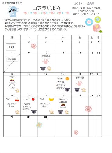 今年も遊びに来てくれてありがとうございました(^^♪ たくさんの方々に出会えて嬉しい一年でした!! 1月のコアラだよりができましたので、お知らせいたします。 来年もよろしくお願いします(#^.^#)